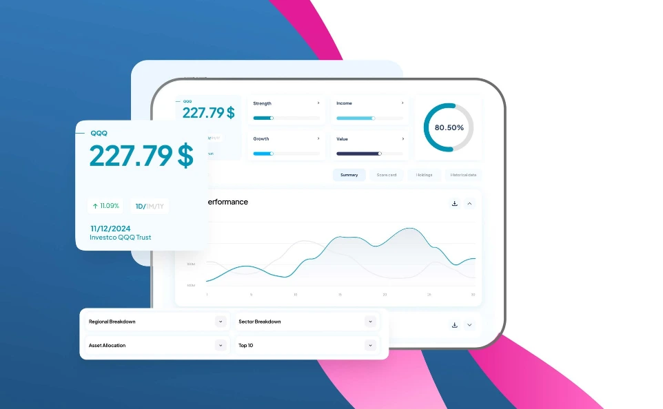 Import & sync clients from your systems or third-party services: for example, from Excel files or Intelliflo. Monitor real-time portfolio performance and provide clients with access to a personalised portfolio dashboard.